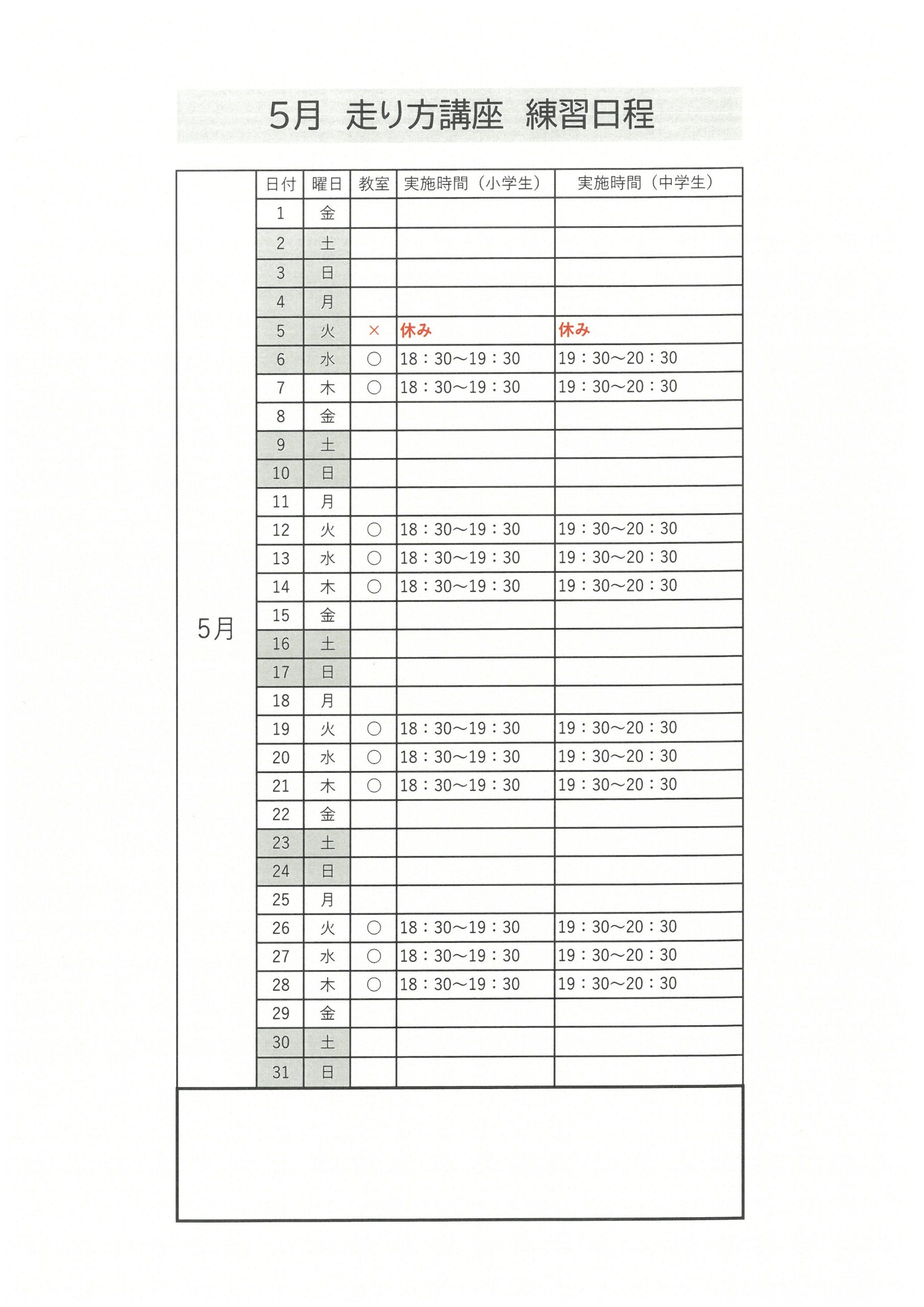 5月1日(金)競技場・雨天走路・補助競技場は終日個人利用可能です。